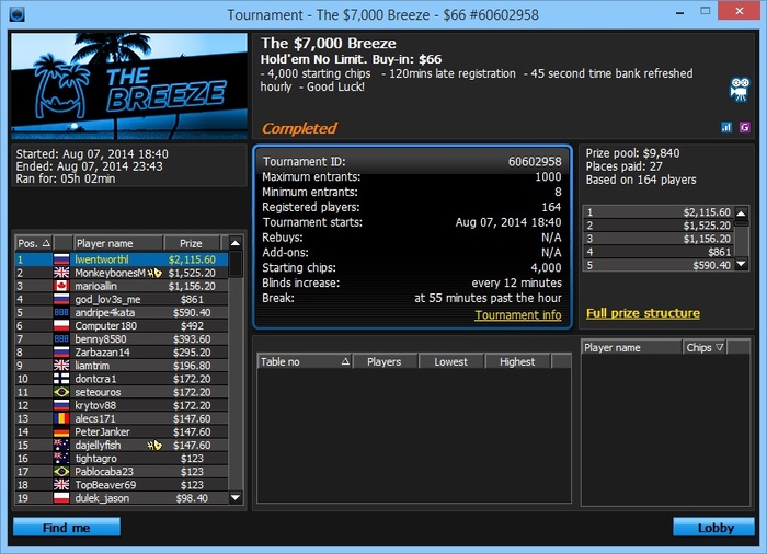Pacific, $60 Buy-in (1,400/2,800 blinds, 350 ante) No Limit Hold'em Tournament, 5 Players Poker Tools Powered By Holdem Manager - The Ultimate Poker Software Suite.