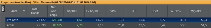 если на анте еще более менее, то пре анте совсем плохи и я не знаю с чем это связано, то ли я действительно играю как гавно, то ли чувство, что совсем не складывается, не обманывает. Основная загрузка все таки на старзах, а там уже 3-й месяц подряд я играю в минус, собирая одни предфиналки и баблы. Из приятного я занял 26-е место в месячном рейтинге покетфайвс, вроде самое высокое за все врямя