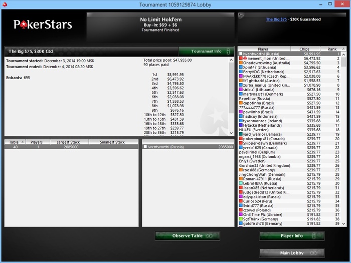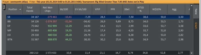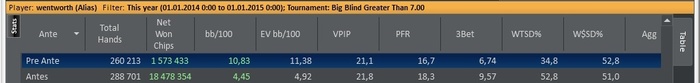 В планах на 2015 плотно гриндить средние лимиты, работать над игрой и стараться выиграть как можно больше, пока лавочку не прикрыли. В течении года много раз появлялись мысли о том что нужно заканчивать с покером, попробовать устроится по специальности или же еще на какую-нибудь работу, но у покера нет конкурентов в плане уровня заработка в моем городе, как и нет перспективных направлений, которые мне были бы интересны. В следующем году все же нужно подойти к этому серьезней и искать сферу куда можно будет податься.
