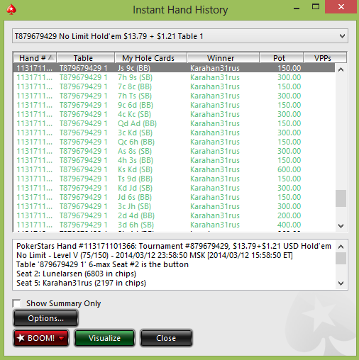 Профит: -308$Вот эта раздача сразу убила настроение на сессию, опять по дебильной невнимательности решил, что у меня ТТ... Поменяю наверно лайаут, а то частенько такое..
