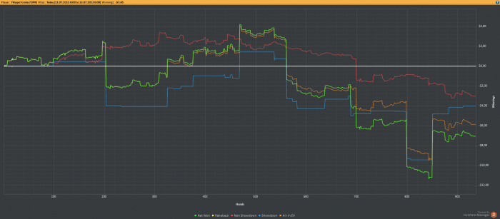Edisson2000 @ 12.7.2013 Думаю ты очень сильно переоцениваешь силу (эквити) своей руки. Попробуй не играть спекулятивные руки типа KQo, мелкие коннекторы.