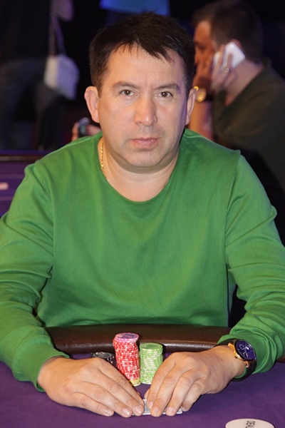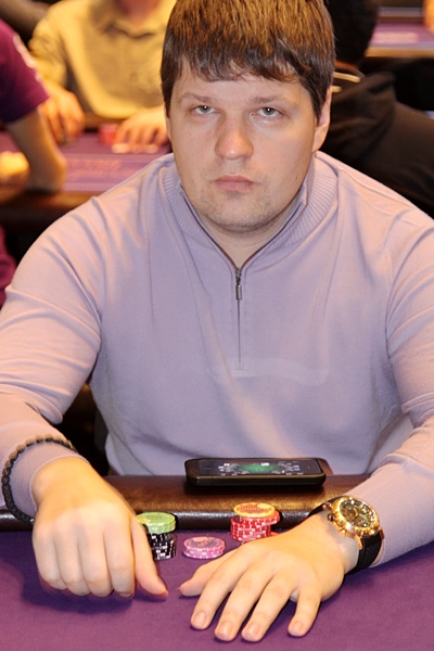 Обнаружился за столом и лучший хайроллер 9-го Евросезона Владимир Трояновский, который пока явно скучает в ожидании большого экшна. Сидит вполоборота к столу, не смотрит на соперников - в основном вокруг, выискивая в зале знакомых, да на планшет, на котором сражается в каком-то из старзовских турниров...
