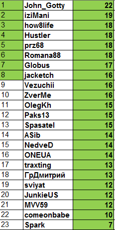 Предлагайте свою систему распределения, другое кол-во призовых мест и т.д. и т.п., голосуйте ставя +/-, оставим ту которая наберет наибольшее кол-во "+" к началу третьего тура.