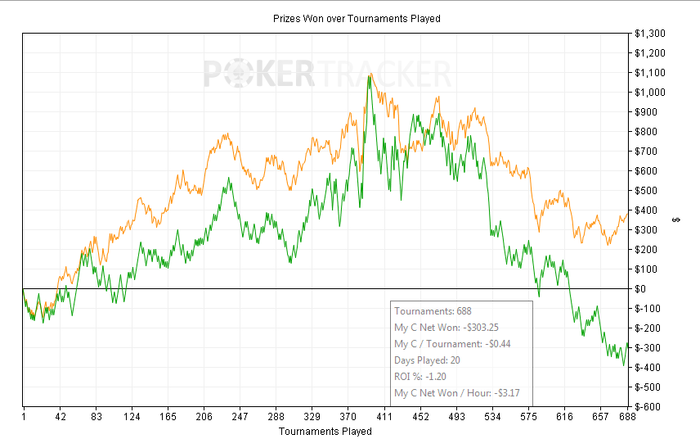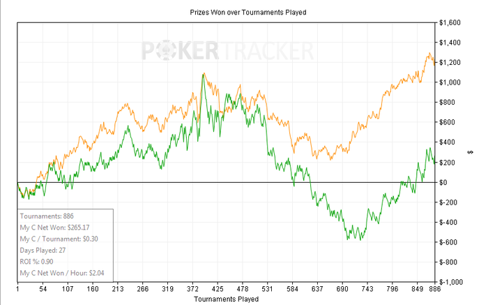 Ну и конечно же график! Как-то мало турниров вышло за 160 часов,но если считать в руках,то не так плохо. Тут где-то 200 шутаутов + 10к рук сыграл в кэш. В ноль.