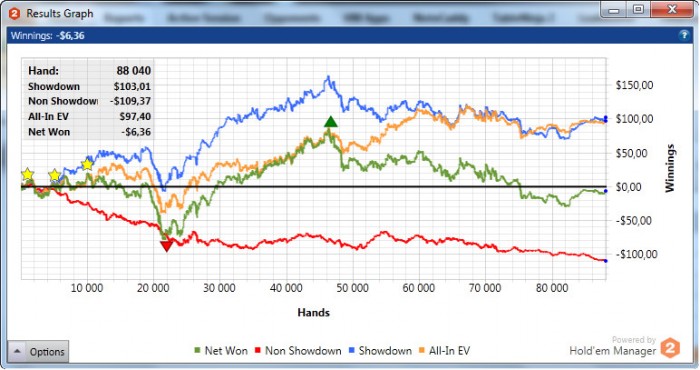 http://www.pokeroff.ru/pochemu-all-in-ev-plohoj-pokazatel-vsej-udachi-post-1941030 Вот, кстати, другой взгляд на олень/ЕВ. Попробуй как в статье прогнать свои руки через фильтр подходящих для олень/ЕВ ситуаций (выставлений до ривера). Вместе посмотрим, что у тебя там и на сколько отличается ;)