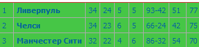 Ну и таблица в которой у Ливерпуля преимущество и именно они хозяева положения. И если они не будут ошибаться, то станут чемпионами 100%.