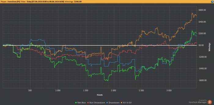 Первый, у меня в диапазоне на терне есть дохера флэшей, потому твой колл без бекдоров на терне не годится. Ок, предположим у фиша фолд на кбет 60 (если честно я вообще не знал какой у него фолд, у меня на него 0 рук), что это меняет? Я почти никогда не дончу абсолютный ейр, его всегда лучше иметь в диапазоне чек фолда. Поэтому мне сложно представить руку которая не доедет на терне. У меня в таком споте есть оба диапазона - чек/колла и донка. На терне, из тех что не попали, я не уверен буду ли ставить (а в тебя точно не буду), это комбы 89c, T9c. То-есть 6 комбинаций максимум. Возможно превращу в блеф(?) семерку. Не исключением будут являться руки типа АsTx, As9x, As8x, если я не решу разыграть их через чекколл. Коллируя терн даже против блефов, у тебя очень сомнительное ожидание, неговоря уже о широте моих натсов на такой структуре. То есть на ривере вполне спокойно у меня может оказаться большое разнообразие велью рук. Если закрывается флэш, то у меня так же масса флешей. Часть из которых я сыграю чек-коллом, а каких то поставлю сам. Валетов повыкидываю, но это не сделает меня уязвимым.