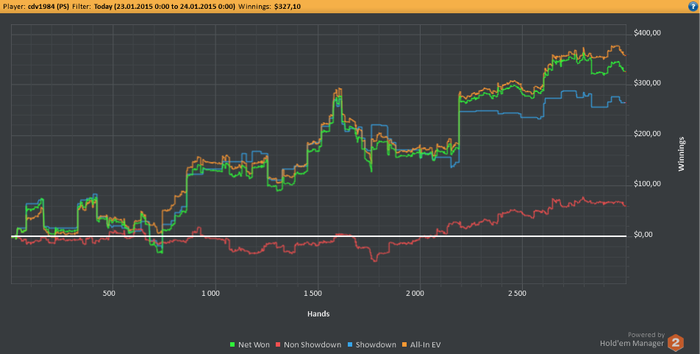 играл мало это около 3 месяцев затем проебал 2.5К по мазе Решил добить супернову и играл 4 стола зума как унылое говно 100к рук в 1бб (а по ев вообще близко к нулю) в начале 2014 играл HT HU SNG - там плюс 1,5к фулл ринг зум +4бб (2000$) в турнирах пару копеек занес +рейкбэк и плюшки суперновы 5к +оффлайн 7к в общем год закончил примерно +20К ну и разумеется все потратил