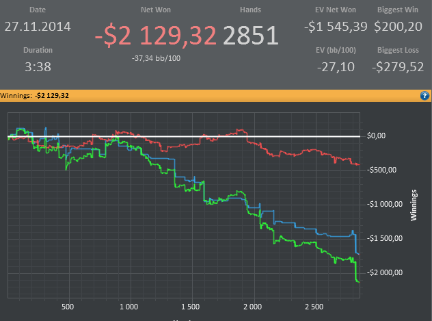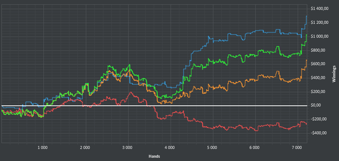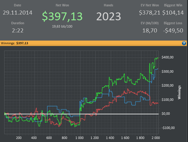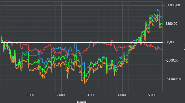 В последней раздаче запихал стек в первый натс и закончил. Еще один раз лузово заколил в 4 бет поте пуш терна (там конечно хитро разыгранный натс), вроде больше больших ошибок не делал.