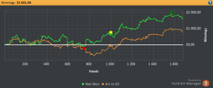 блин играл токо что с чуваком что-то вроде 70-40-20 сначала втроём потом вшестером бля выебал всех в хвост и в гриву 7БИ как корова языком (правда я не в форме и не заходило нихера) но блин ! умеет же человек играть постфлоп !!! сцуко я в восторге просто чувство как будто водителя сельского автобуса Шумахер час катал на формуле 1 почувствовал себя каким-то галимым новичком м-да... Есть куда расти ! повезло что такого монстра я встретил на 25-х а не при штурме высоких лимитов
