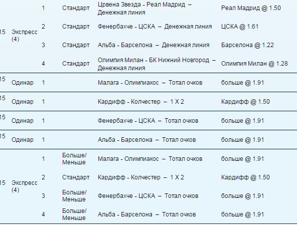 18> Экспресс. K=2,5905. ВХ. Stake: 30 EUR. Profit: +47,715 EUR.