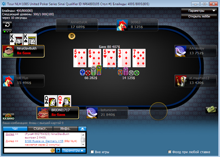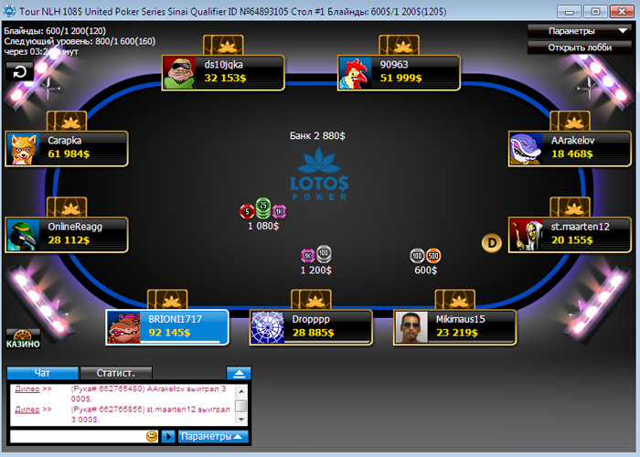 Первым покинул стол Андрей "Dropppp" Баранюк - он выставился на , у Дмитрия "ds10jqka" Семенова, который уже выигрывал путевку от LotosPoker в Бургас