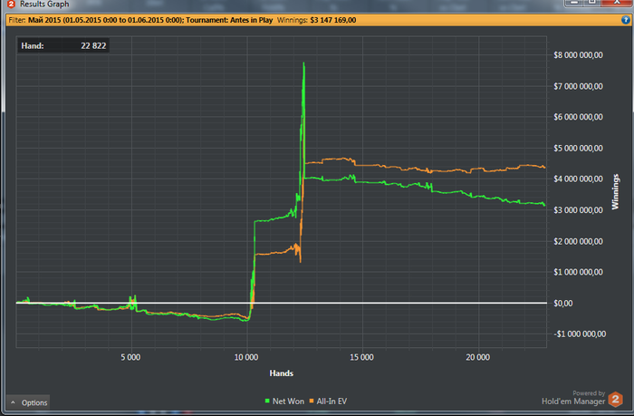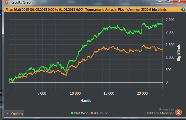А если вернуться к сегодняшнему дню, то теперь я хз как тащить турниры)) Я серьезно. Вроде бы стиллинг поставлен, с постфлопом стал разбираться на троечку - четверочку с минусом, с трибетами вроде бы не так все плохо как раньше, рестил посчитан, пуш/фолд посчитан (в разных стеках), разобраны диапазоны кола пушей из разных позиций, с защитой бб потихоньку разбираюсь. Но... не могу выиграть ничего, не могу.. Судя по ХМ, бб я перебираю прилично, но побед нет. Когда играешь постоянное ощущение, основанное на впечатлениях от игры, что меня слишком часто переезжают (выкладывать такие раздачи могу бесконечно). Причем свидетельств перездов/кулеров - вся 10-я страница моего блога. Открываю ХМ - перебор по ББ