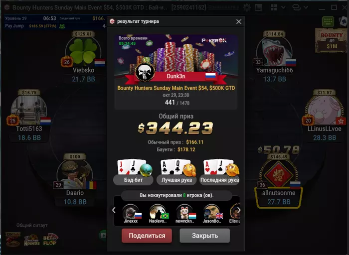 В этом году удалось поиграть дорого. Один только турнир за 500 чего стоит.