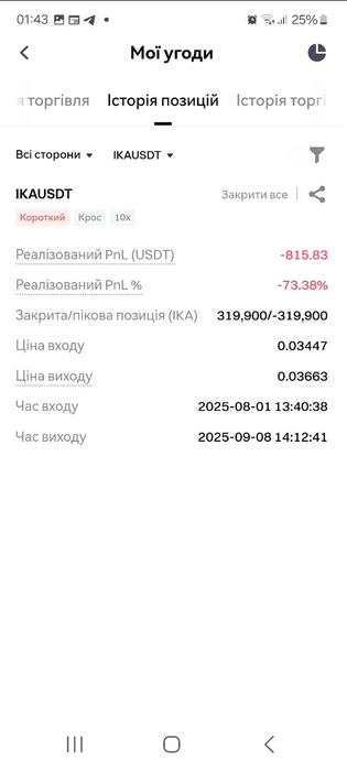 У меня был открыт шорт по IKA больше месяца на довольно большую сумму - около 10К баксов.