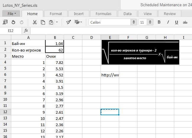 Здравствуйте, проверьте рассчеты по вчерашнему турниру по Омахе. За первое место, по формуле, должны начислять 7,82 очков, а начислили всего 5.53 - по всем остальным местам рассчет так же недостоверный - со смещением на 1 ступень вниз.