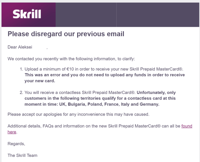 сегодня пришло письмо от скрилл, что в сентябре мне вышлют карту и просят проверить мой адрес