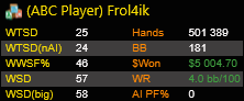 У меня есть база данных, одна из, в которой у меня красная имеет лучший градус. Так вот, я по-дилетантски пытаюсь вернуть себе ту игру. Вот вчера поставил фильтр, где я вколил 3бет и выиграл без шд. Начал смотреть раздачи, поначалу было штук 5 стандартных. Типа я рейжу сет на флопе или терне и пихаю ривер в итоге, опп фолдит. Но потом пошли такие, где я рейжу тупо карманку, 3-4ю пару, превращаю в блеф осознанно, а затем запихиваю. Или вообще с А хай. Думаю некоторые помнят какие я раздачи выкладывал пару лет назад. Писал что-то типа: АХАХХА ТЫ КАПНУТ ЖРИ ТВАРЬ И ПУШИЛ НАХУЙ! И забирал банки... а оппы смотрят 12.7/11.2/6.24 7bb/100, и не понимают что происходит блять.