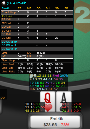 Это скрин попапа из 1й базы, да-да! Я тогда изолировал лимперов на СО и БУ по 8%. Но это похуй, когда ты играешь в 7bb/100! Ваще насрать. Автобан хейтеров и доброжелателей. А почему? Потому что мрази лимпят сильные руки и я это понимал. Рейзят 5% с ЕП, лимпят 10%. Не фолдят на цбеты и еще и донкают уроды. Да, я сейчас имею ПФР против 1 лимпера в 2 раза больше и вин-рейт по №3 стал тоже в 2 раза больше. Но для 1й базы эта ситуация не определяющая вин-рейт. Для 2й, где 2.6 ев бб да, для 1й нет. Там сильная играл вс рейзер и анопенед. А скрин я выложил чтобы показать колд коллы с ББ!! ББ вс ЕП 4%, вс МП 4%, вс СО 6% и вс БУ 8%. 20% ББ вс СБ, где еще 22% 3бет.