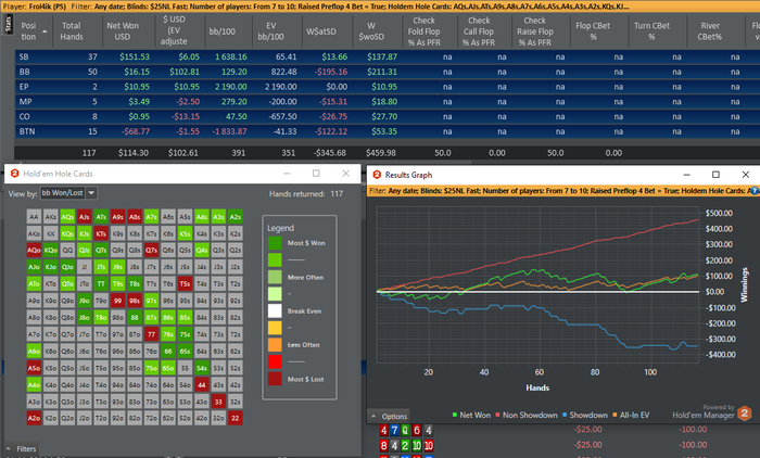 Вот я, например, не хочу в конце месяца увидеть тоже самое, но на дистанции в 2 раза больше. 100к рук, например, нл25 в 1 ев бб. Да лучше уж нл2 с мразями играть. Проставляя сеты сайзом 150% от пота.