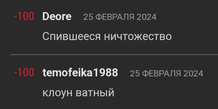 Эти цифры вообще ни на что не влияют ни в чьей жизни, можно не отвлекаться. А ещё это хороший признак кого читать не надо. Тут почти гарантированная зависимость, что если человек заходит в профиль поставить минус сотку с оскорблениями, то там в плане контента от него пустое место плевка не стоящее. Не будет никаких медалек за блог месяца, лучший пост и тому подобное. Просто фрустрированная биомасса.