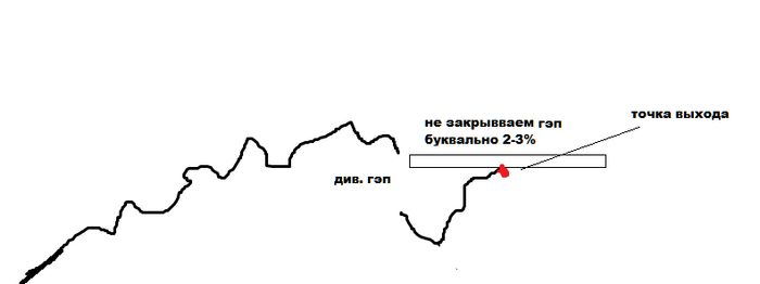На 350 руб/акц перед див. отсечкой можно смело рассчитывать - это 15 % дивдоха. Если 350 не дают, то просто забираем дивиденды. Спекулятивно по 370 можно начинать продавать. Я рассмотрю продажу части пакета по 400. Есть еще такой паттерн (см картинку), как забирать дивиденды, который я часто использую.