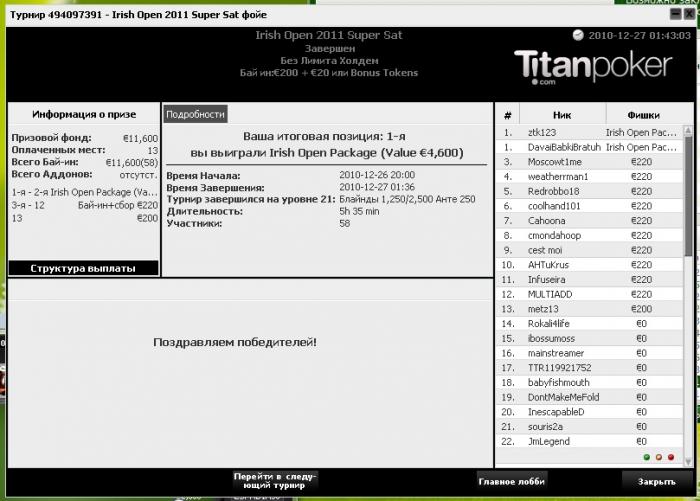 akhrim, Смотрел финалку,на молчание оппов о дележке,Илья устроил шоу,рейзами и ререйзами вогнал оппов в тильт,вобщем когда оставалось 5тел, у Ильи было 9 лям чипов,на ост.4 вышло 3кк.Вобщем красавец.ХА длилось мин.10.Респект.