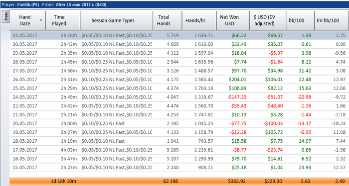 Основные положения(обязательно к выполнению): 1) Я должен откатать с 15 по 31 мая(вкл.) 2017 года - 60 000 раздач на лимитах нл10 и нл25 зум фр.