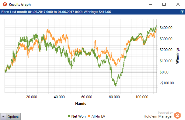 В январе я сыграл всего 38.5к раздач. С бром 1400 полез на нл50 зум сх, неудачно. Ничего не заработал, но жрать все равно хотелось как обычно и -52.4% к бру. В апреле с доходом вырос и расход. Что не ок. Потому что есть мудрая мудрость: "Все желания все равно не удовлетворить". Так что зачем разъебываться в попытках доказать обратное? В мае выходит, что я будто сыграл ёлочкой, +8% к бру это конечно норм, если у тебя бр 6ти значный. С другой стороны, я горжусь тем, что живу не в ноль, хотя бы последнее время. Живу в плюс.