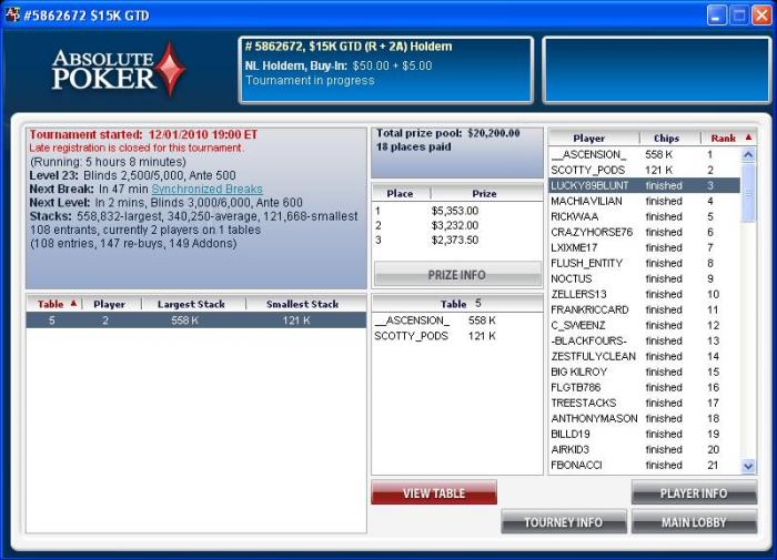 После 3его не доезда, думал что щас на бабле к финалке в снайпе у*бут и пойду спать... Но получилось чуть-чуть не так как я думал, в ХА остался с 011PokerDr. В ХА играет так себе как мне показалось или просто я включился на все 100% =)
