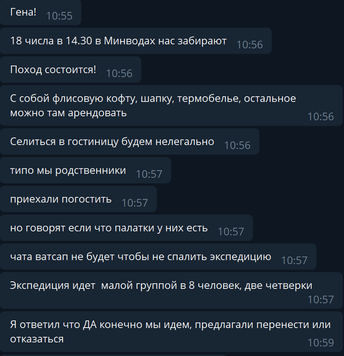 Лонг стори шорт, приехали в мин.воды в 4 утра, а сбор то после обеда. Там погуляли по городу, деревня в целом, маленький городок, зато кофе дешевое. Вернулись на вокзал и познакомились там с чуваком, который тоже с нами как оказалось идет. Был в прошлом году, но не зашел на гору из-за погодных условий - не повезло, приехал на вторую попытку.