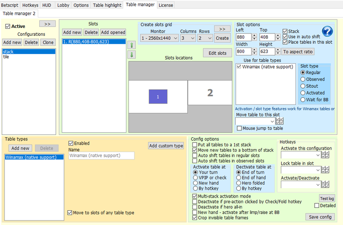 Данный механизм позволяет создавать, например, разные слоты для разных фаз турниров (если в заголовке стола есть уровень блайндов, то можно настроить автоперемещение стола в другой слот при изменении уровня)