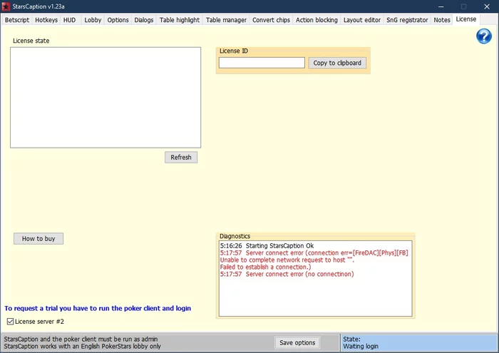 Когда такое случается, можно переключиться на альтернативный сервер, выключив галку в левом нижнем углу (License server #2) и перезапустив программу (как указал выше Aist84)
