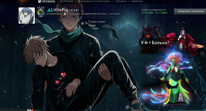 И потом до рун урса отключился, я пришла на лайн и поняла что урса то мидовый Видимо жизнь чела тоже довела, у него 6к игр где-то) Потом он подключился на 3й минуте и снова отрубился)) Может совпадение, но я посмотрела его закуп и увидела там 3 пачки танго Походу на него накричали тиммейты и он не захотел играть(( А он наверно просто хотел показать всем свой красивый костюм...