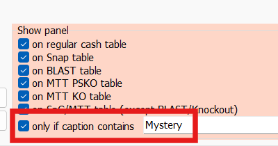 LikeAA, здравствуйте, возможно ли в СтарзКепшине, в разделе "Table highlight" добавить правило которое бы определяло столы со включеной опцией "sit out next big blind"?