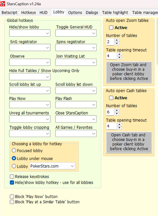 В других моих программах есть опция, которая автоматом открывает и прячет турнирное лобби. Здесь пока такой опции нет, я её добавлю в будущих версиях.
