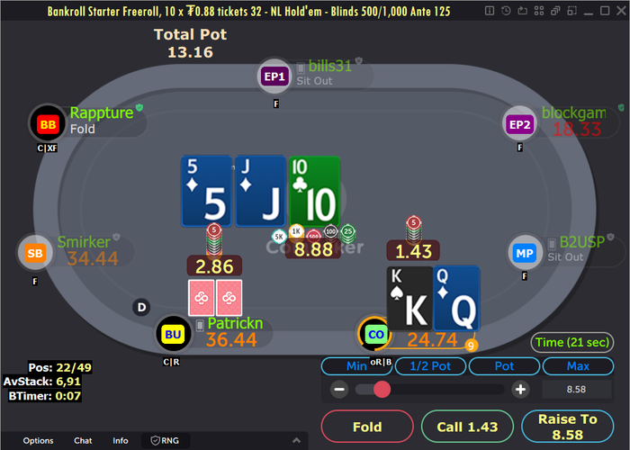 Например на этом скрине в левом нижнем углу отображатеся позиция хиро, количество игроков, средний стек в бб и время до следуюещего уровня блайндов: