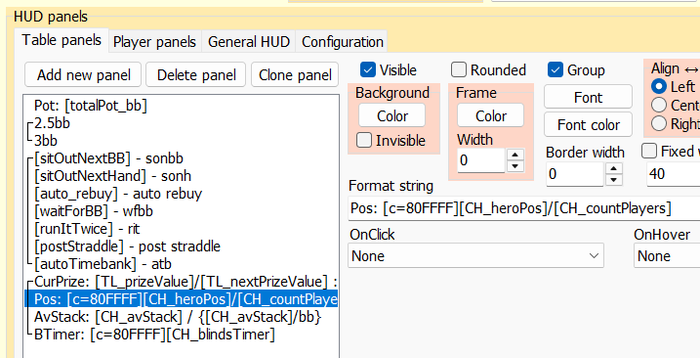 LikeAA, привет, проблема в языке рума была, все получилось! Спасибо огромное! Подскажи еще, пожалуйста, у тебя в нижнем углу отображаются: позиция хиро, количество игроков, средний стек в бб и время до следующего уровня блайндов, это вручную надо формулы прописывать?