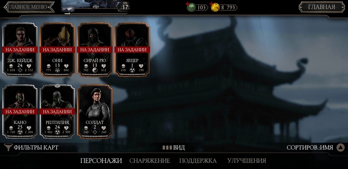 джонни-мнемоник @ 1.4.2019 В общем, так как у меня теперь нормальный телефон ( для такого села как я - galaxy a6 black - это просто чудо техники!) - я скачал свой любимый Mortal Kombat X для мобильного - немножечко иногда подлагивает игруха, но она..ахуенная просто!!! . Моему восторгу нет предела, очень много опций, не зря она весит 1.5 GB:dance:)). Ребята, городские! У меня вопрос - как правильно проходить режим "test your might" - совершенно не получается и я очевидно проебываю плюшки и проебал их уже прилично, ибо пока я 17й lvl и башен прошел прилично. Играю пока серебрянными карточками, без доната - коплю души на золотой набор, персы в конце поста.