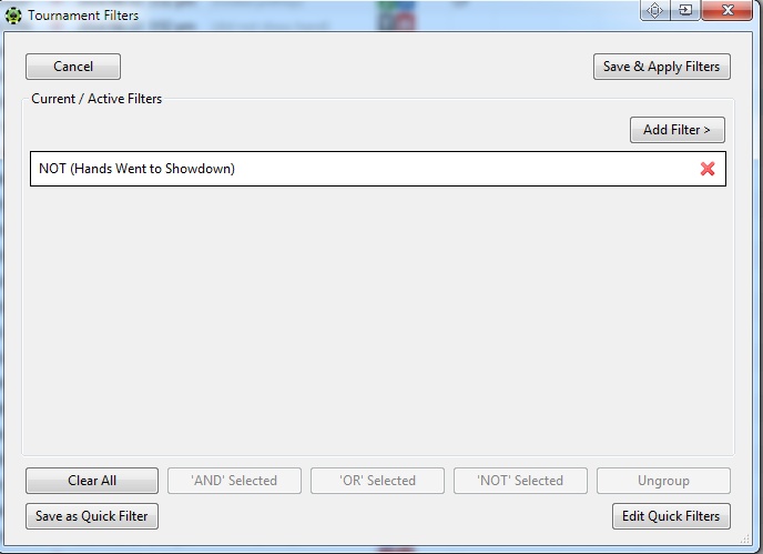 Как отфильтровать раздачи без вскрытия? Есть фильтр Hands went to showdown: выключен - все руки, включен - только с шоудауном, а без него-то как посмотреть?