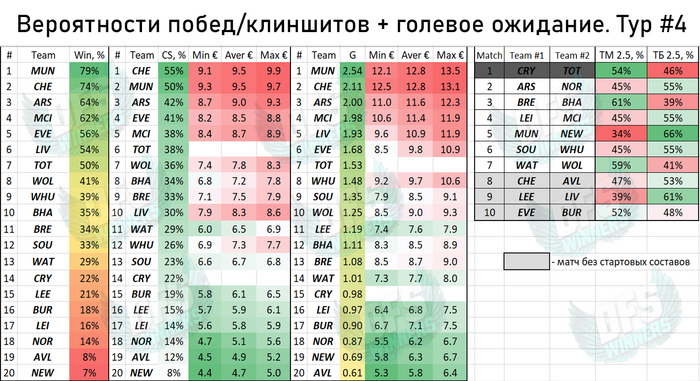 Котировки букмекеров на тур №4 + средний прайс на игроков для Weekly Monster