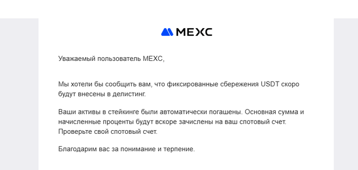 mexc клоуны, свернули свою акцию usdt под 15% apr на месяц.