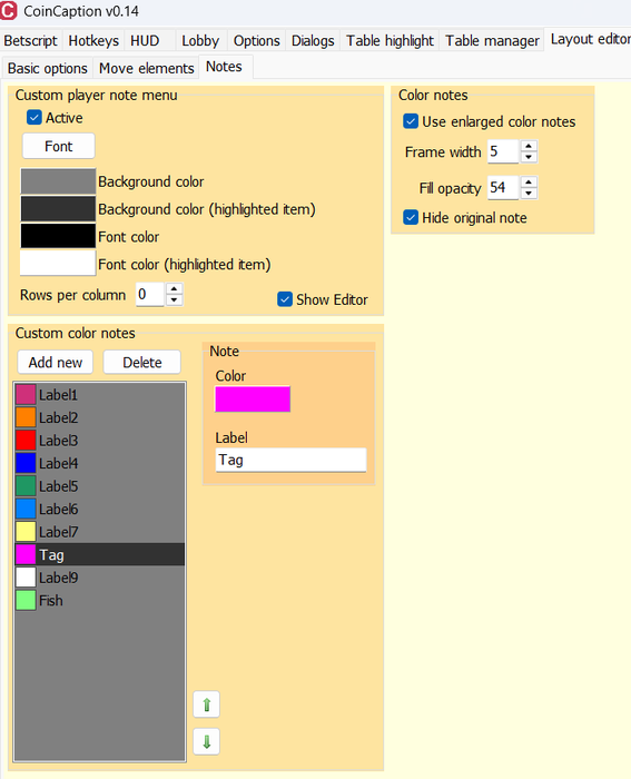 2. Переработал систему цветовых меток. Для этого добавил новую подвкладку Layout editor / Notes, теперь все опции связанные с метками находятся здесь.