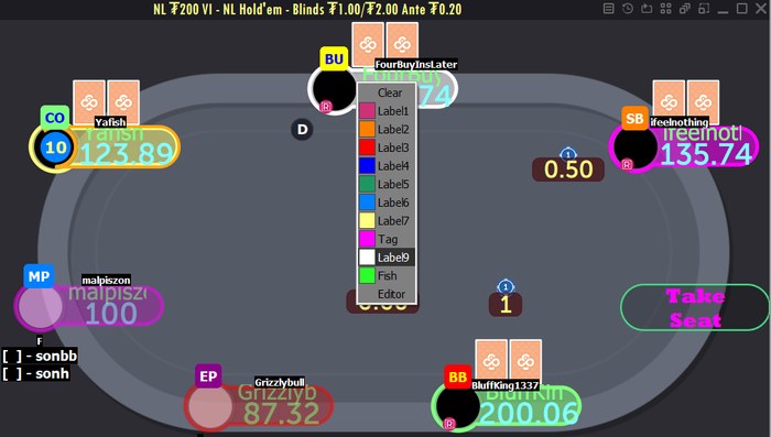 Метки, начиная с седьмой, управляются и хранятся по-другому. Если вы запустите покер клиент без CoinCaption, либо запустите CoinCaption при уже октырых столах, то увидите, что все игроки, помеченные такими метками, на самом деле помечены шестой стандартной меткой рума (во втором случае, если запустить программу при октрытых столах, метка сменится с дефолтной на цвет, которым вы помечали, в начале новой руки на этом столе).