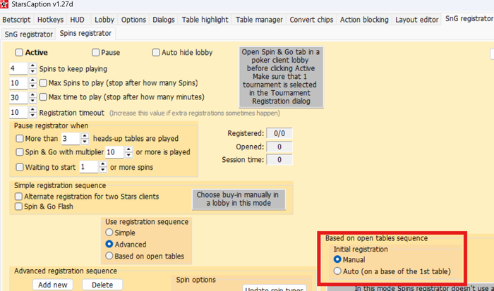 попробовал авторегу на основании открытых столов. заранее нажал галочку актив, тк считал, что прога будет только нажимать кнопку плей агеин. но после открытия первого стола, прога начала дублировать этот стол на максимальное количество столов, указанное в программе. вот так поставил