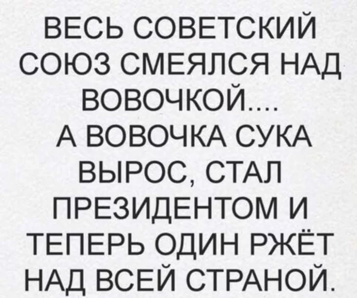 Чем меньше у человека в жизни достижений, тем он больше гордится "величием" страны и президентом. Обрати внимание на тех, кто топит за Путина. Это либо те, кому выгодно (силовики и приближенные к кормушке) либо самые низкие слои населения. Им нужно хоть как то оправдывать свое жалкое существование, а тут по телевизору предлагают шикарное и бесплатное хрючево: страна великая, всем пизда, Путин Альфа самец. И под водочку это блюдо заходит ой как ахуенно. Ты просто сидишь пьешь осетинский спирт заедая пальмовым маслом, нихуя не делаешь, и при этом являешься частью чего то великого. Мозг в ахуе от радости и очень быстро забывает что ты раб, и что ты для своего президента по значимости являешься существом на уровне земляного червя. И при этом поздравляешь его с днём рождения как героя.