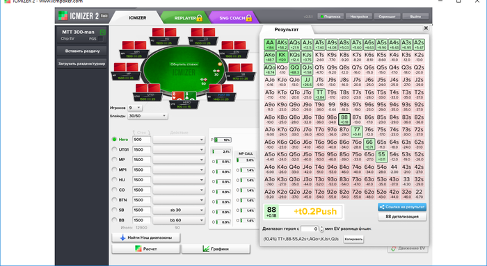 Это не равновесные диапазоны, а айсимайзер гавно, заставляющее руками колы/оверколы выставлять. Автоматом они у тебя по 0.9, ну и естественно показывает, что блочить тузы лучше, чем пушить Т-Т.