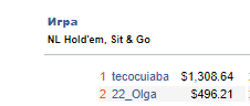 KravA29, В команде играли между собой раз в месяц, если не ошибаюсь, турнир. Очень нравился. все реги со скиллом - интересно побороться было. И как то там помимо привычного холдема еще и омаху запустили. тоже там третье место занял , не зная правил вообще. Третьим вылетел только потому, что думал, что стрит у меня, да только в омахе он на 1 карту не играет)))