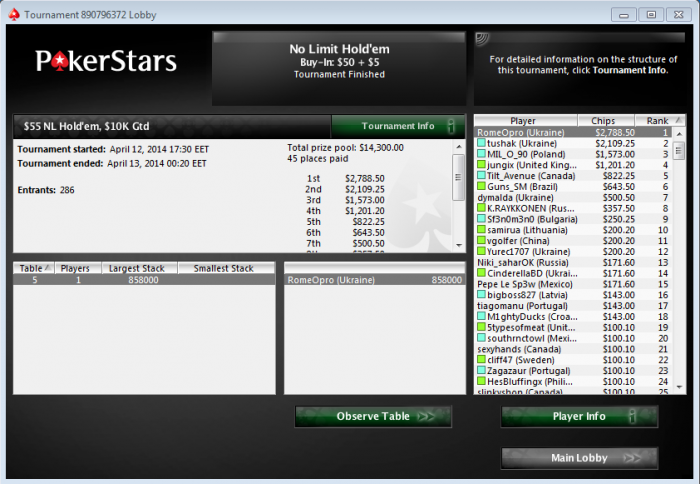Перспектива, Поздравляю! Ты очень терпеливый человек. Отличное качество для покериста. И в плюс-то какой хороший вышел, хотя терпел с самого начала карьеры унижения старзов 11 тысяч турниров, заплатив за это больше 4000 зелени.