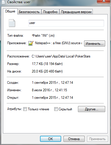 Далее закройте программу PokerStars, после чего откройте файл "user" в любом текстовом формате кроме Word. Мы рекомендуем использовать блокнот (notepad). Для этого Вы можете нажать на файл правой клавишей мышки и из открывшегося меню выбрать опцию "Открыть с", и выберите "Notepad" (блокнот)